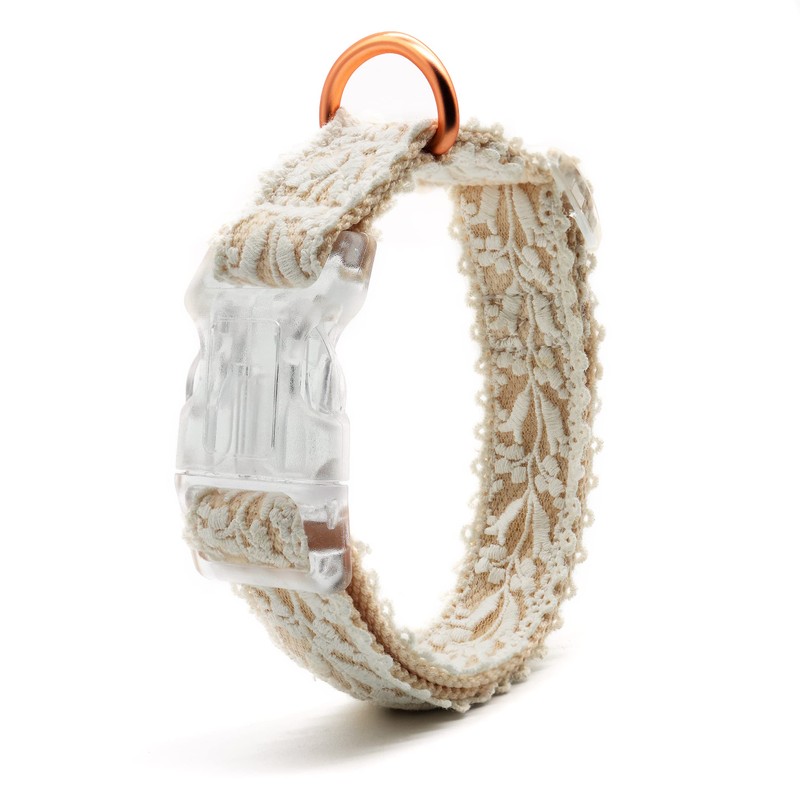LEKAIGO Dog Collar and Leash Set, Cotton Lace Handmade 4-5 FT Adjustable Comfortable Unique Collars for Small Medium Large Dogs 1pcs-Beige-Collar(Width:1")