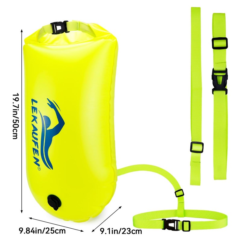 LeKaufen 28L Swim Buoy Swim Safety Float Waterproof Dry Bag for Open Water Swim, Triathletes, Boating, Kayaking, Snorkeling, Swimming Training (Yellow)