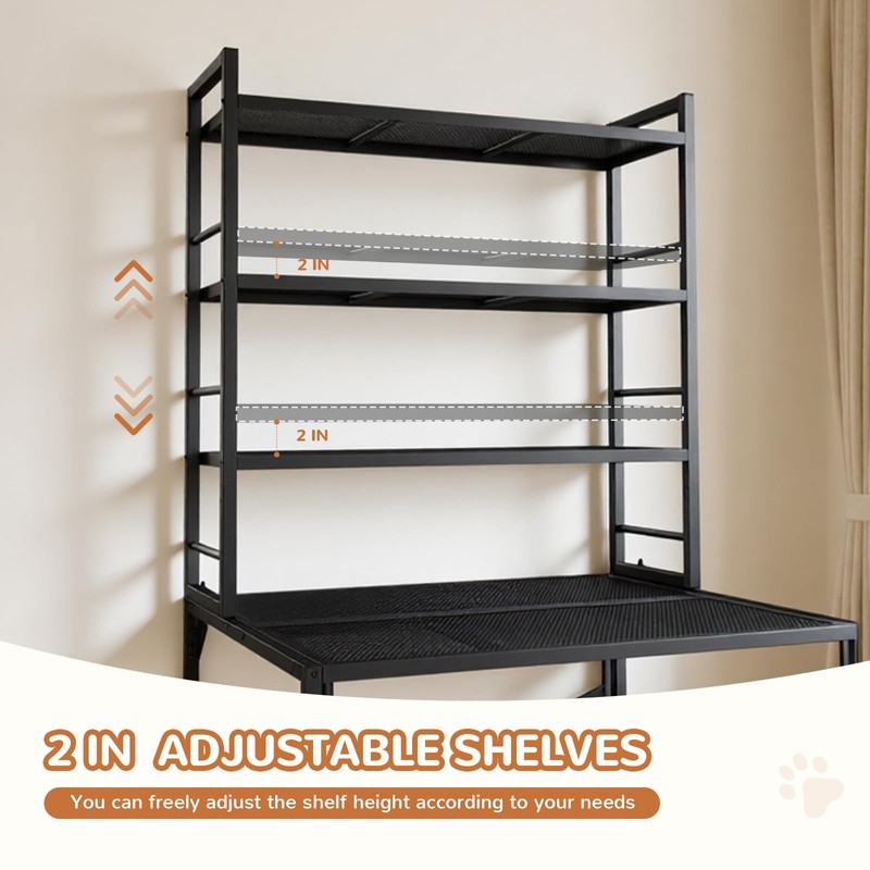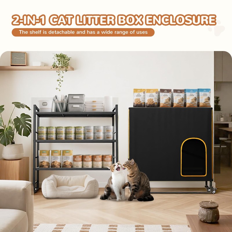 - Practical Adjustable Storage Shelves: The litter box furniture is more than just a hidden litter box, this multi-functional cabinet features a spacious 3-tier adjustable shelf (top section dimensions: 33" L x 12" W x34" H) to organize cat supplies, food, scoops, and more. Customize shelf heights to fit your essentials—keeping everything tidy and within reach for a clutter-free home