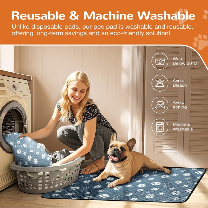 Lekereise Washable Pee Pads for Dogs, Super Absorbent Reusable Dog Pee Pads, Non-Slip & 100% Leakproof Puppy Training Pads for Playpen, Crate, Floor, Sofa, Car, Blue (S(18"x24"))