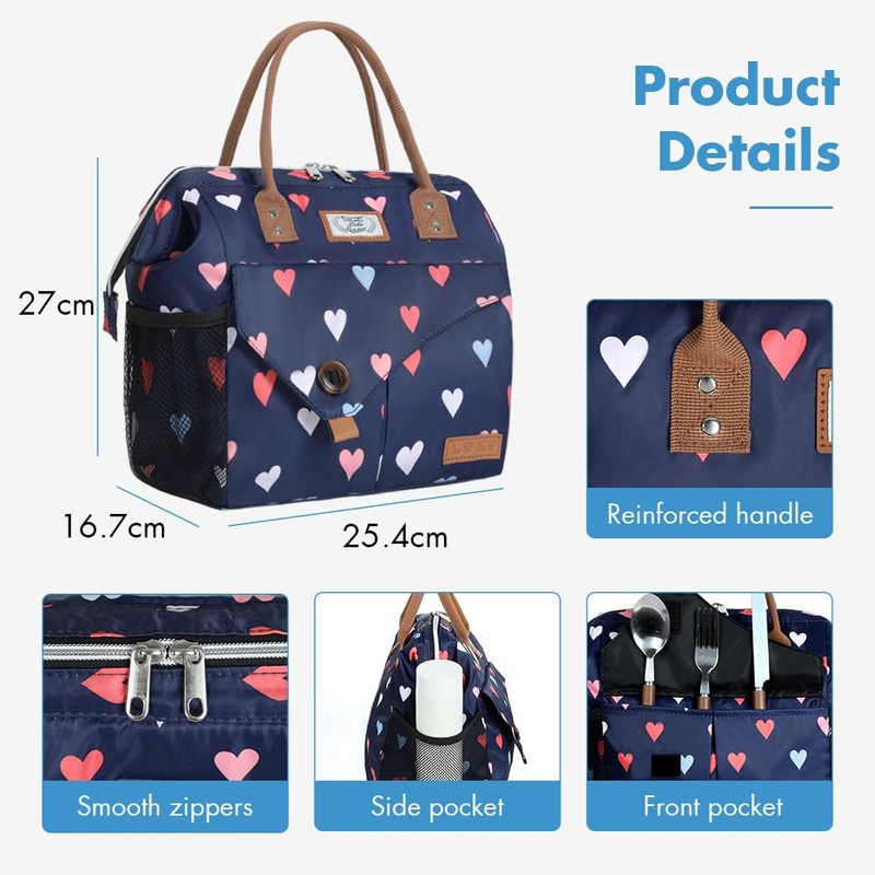 Lekesky 10L Insulated Lunch Bag for Women for Work Lunch Tote,Heart Pattern