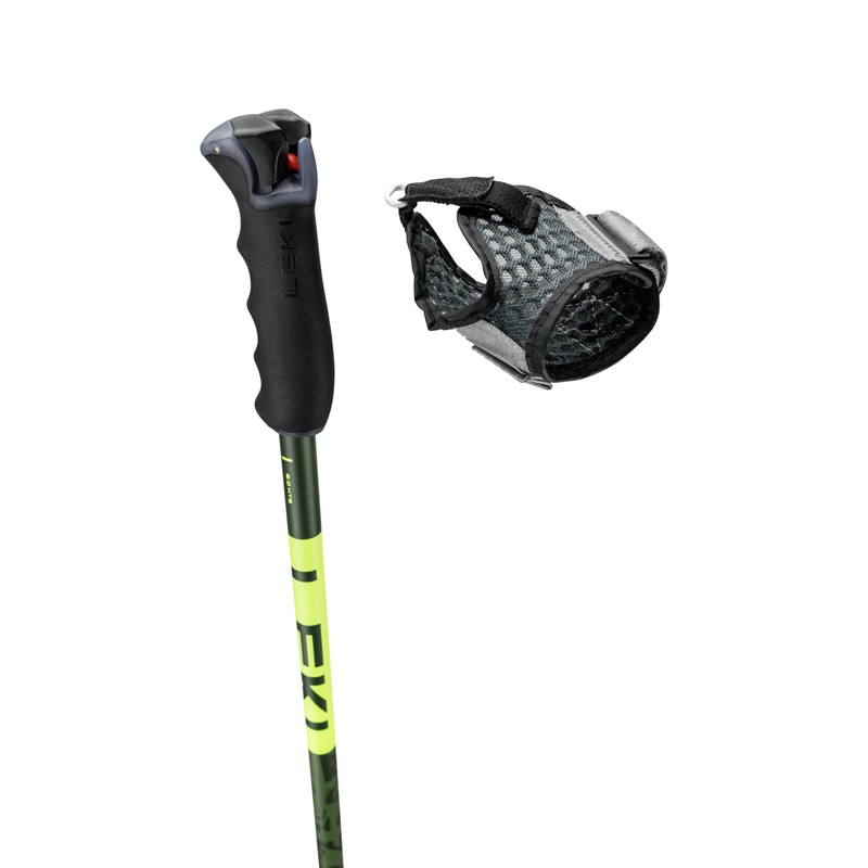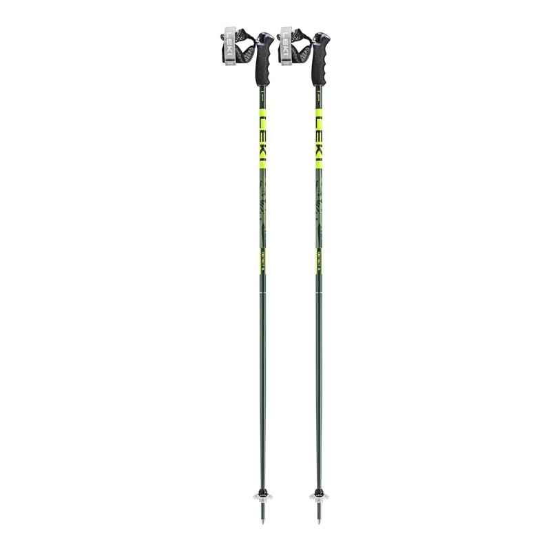 LEKI Detect S Lightweight Aluminum Ski Poles for Alpine Skiing - Olivgreen-Darkolive-Neonyellow - 125 cm