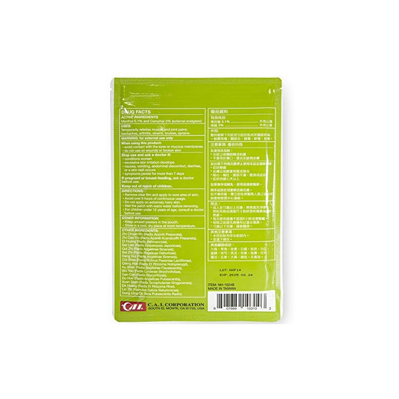 LEKON - Pain Relief Green Herbal Patch 10 Sheets Per Pack - Regular Size 5.75 in x 4.5 in