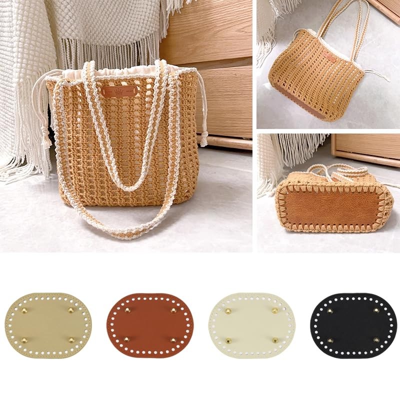 Leliafleury 2Pcs Crochet Bag Bottom Base 14.5cmx11cm PU Leather Bottom Oval B...
