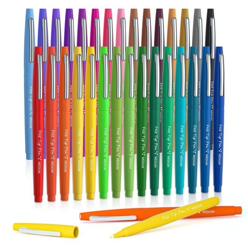 Lelix 30 Colors Felt Tip Pens, Medium Point Assorted Markers Pens For Journaling, Writing, Note Taking, Planner Coloring, Perfect for Art Office and School Supplies