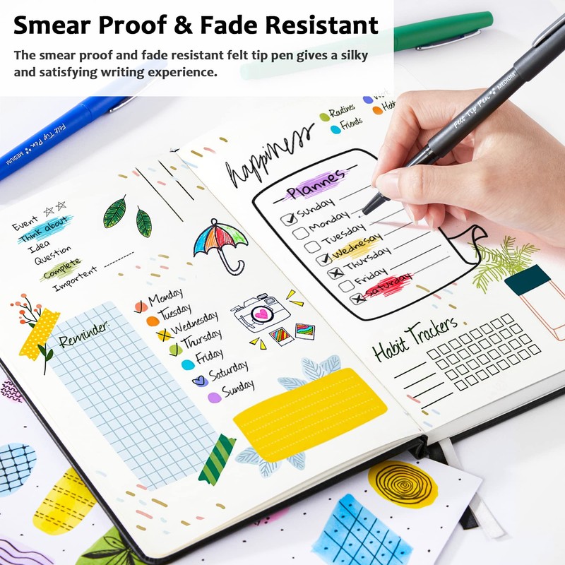 - SMEAR PROOF & FADE RESISTANT: Lelix felt tip pens with high pigment, long-lasting, quick-drying ink is smear proof and fade-resistant, giving a silky and satisfying writing experience.