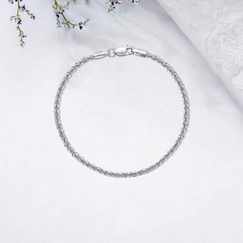 LELOUCHY Solid Sterling Silver Sparkle Gypsophila Chain Bracelet for Women Silver Chain Jewellery - Lobster Claw Clasp 2mm 7 Inch