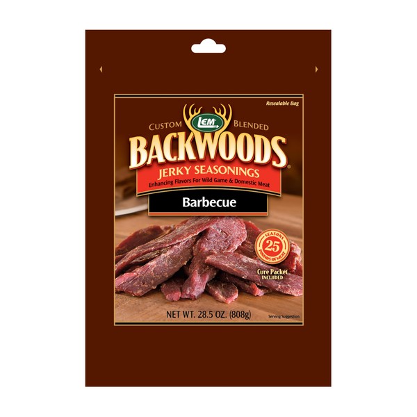 LEM Products Backwoods BBQ Jerky Seasoning, Ideal for Wild Game and Domestic Meat, Seasons Up to 25 Pounds of Meat, 28.5 Ounce Packet with Pre-Measured Cure Packet Included