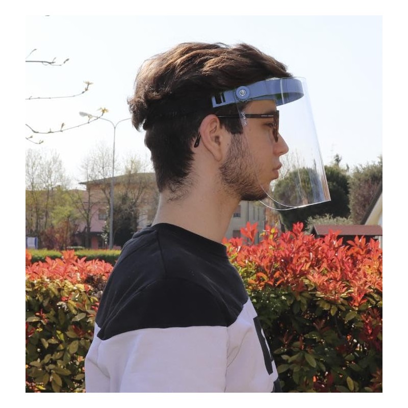 Adjustable visor made of transparent polycarbonate for working in the garden and for maintaining green areas.