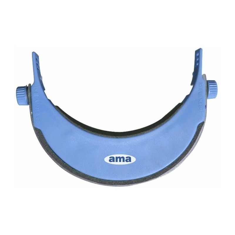 The visor is equipped with an elastic band, whose length and tension can be changed by two rotating wheels at the ends.