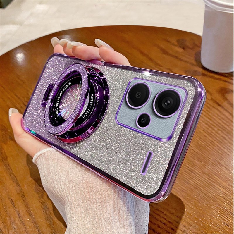 LEMAXELERS Glitter Case for Redmi Note 13 Pro Plus 5G, Bling Sparkle Shiny Women Girls Slim Luxury TPU Shockproof with Kickstand Cover for Xiaomi Redmi Note 13 Pro Plus 5G, Purple DS