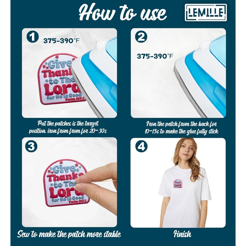 - EASY APPLICATION: Applying LEMILLE's embroidered patches, clothing patches, decorative patches, iron-on patches, and sew-on patches is incredibly easy and straightforward. Clear, simple instructions are provided, so with just a brief DIY effort, you can effortlessly transform your clothing, accessories, and home decor into customized, fashionable pieces that perfectly showcase your unique style and creative expression. Whether it's jeans, jackets, bags, or other fabric items, these patches can be quickly and easily applied to create personalized, one-of-a-kind looks.