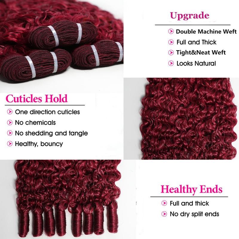 Lemoda Hair Burmese Curly Bundles Human Hair Water Wave with Spiral Human Hair Bundles 100% Unprocessed Virgin Hair Extensions Dark Burgundy 99J Hair Bundles And 5X5 Lace Closure:_12 Inch (5*5 Closure)
