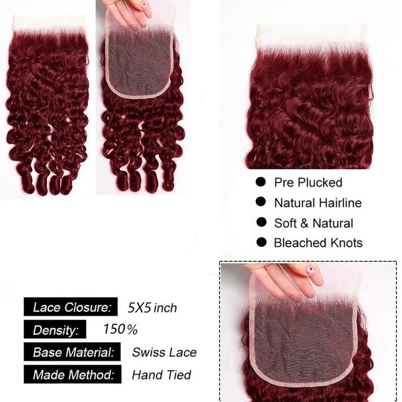 Lemoda Hair Burmese Curly Bundles Human Hair Water Wave with Spiral Human Hair Bundles 100% Unprocessed Virgin Hair Extensions Dark Burgundy 99J Hair Bundles And 5X5 Lace Closure:_24 Inch (1 PC)