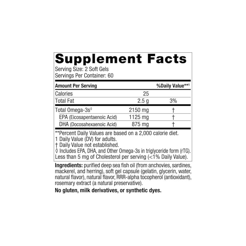 Lemon Flavor, ๐ผ๐๐๐๐๐๐๐ ๐ถ๐๐๐๐ ๐๐ฟ ๐บ๐๐๐ ๐ฎ๐๐๐ 2150mg with ๐ฌ๐ท๐จ & ๐ซ๐ฏ๐จ, Good for Heart and Brain, Gluten Free, Non-GMO, 1 Pack(120 Count)