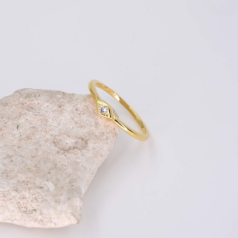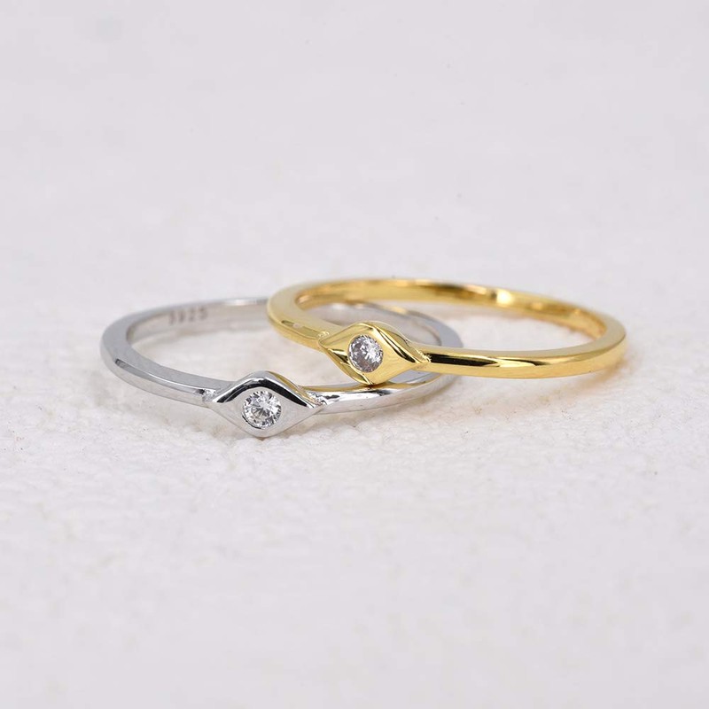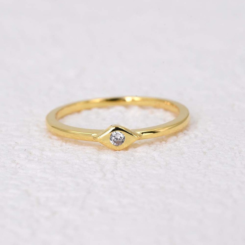 LEMON GRASS Sterling Silver Evil Eye Dainty Gold Ring Size 6