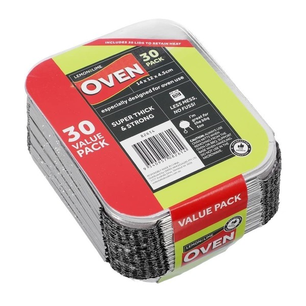 Lemon & Lime Foil Container with Lid 30-Pack, 14 cm x 12 cm x 4.5 cm Size