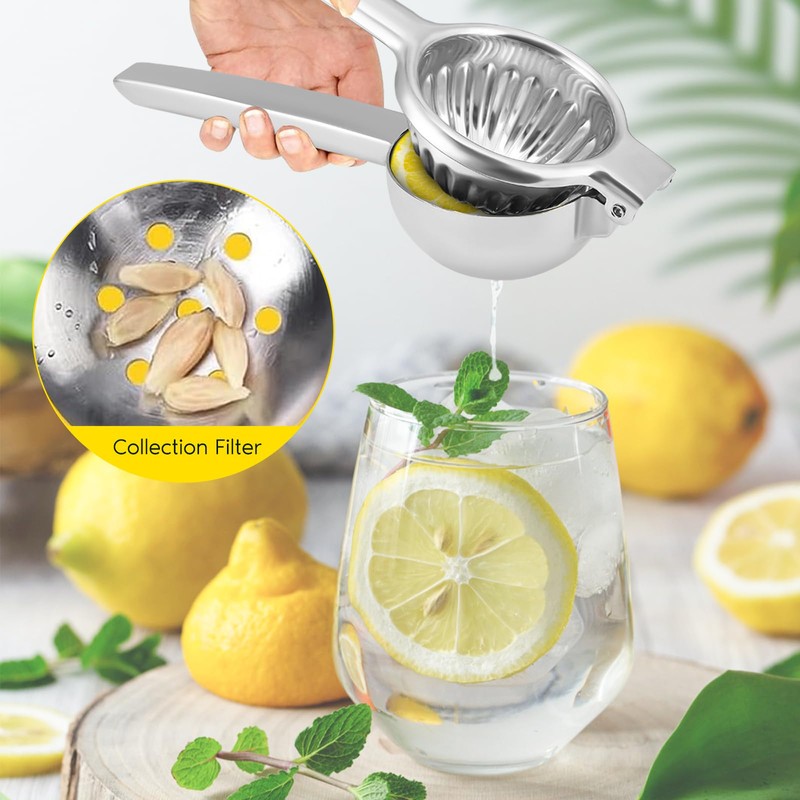 - Robustness: made from solid 304 stainless steel, the citrus press will last a lifetime! With a robust construction, this manual citrus juicer ensures stability and optimal functionality. It can easily withstand the pressure of squeezing citrus fruits without bending or breaking, making it perfect for squeezing lemons, limes and even oranges.