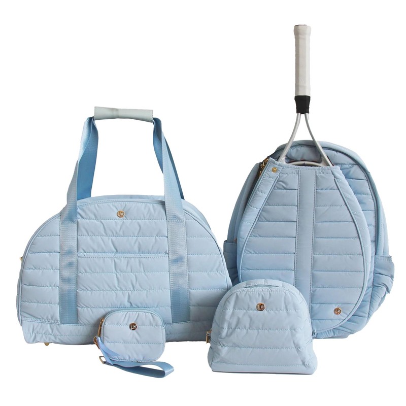 lemonbella Medium Jennifer Cosmetic Bag Nylon Quilted Travel Makeup Pouch - Shiny & Stylish Toiletry Organizer for Women, COTTON CANDY BLUE