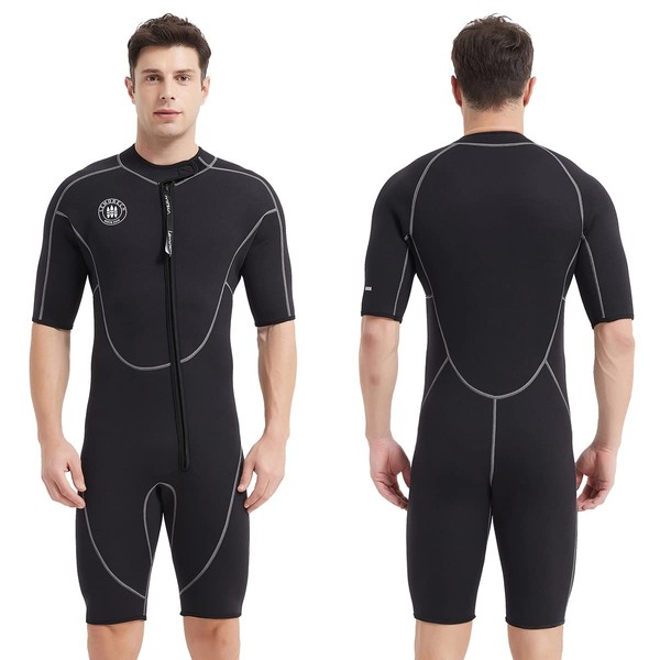 Lemorecn Wetsuits Mens Front Zip Neoprene 3mm Shorty Diving Suit(CA3016black-L)