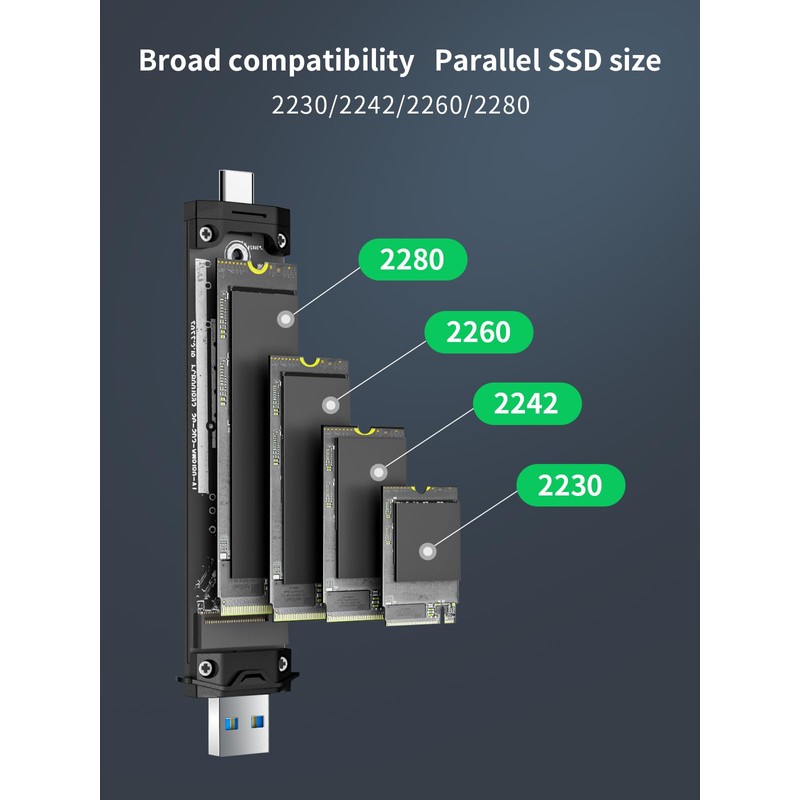 Lemorele M.2 NVME SATA Enclosure, M.2 SSD NVMe Enclosure USB 3.1 Gen 2 to PCI-e,NVMe to USB Adapter for 2230/2242/2260/2280 M.2 NVMe/SATA SSD from M-Key/M+B Key(10Gbps) (NVME&SATA)