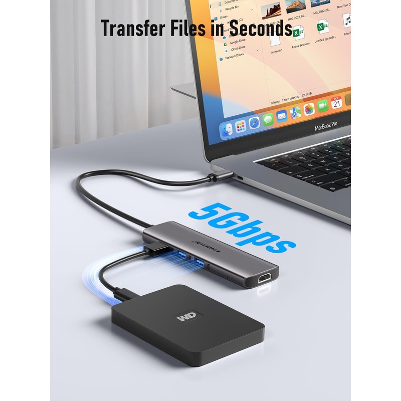 Lemorele MacBook hub Docking Station Dual Monitor Multi-Stream Transport, 6 in 1 USB C Laptop Docking Station w/4K HDMI, 3 USB 3.0, 100W Charging Port, for MacBook Air Pro M1 M2 Mac OS 10.15