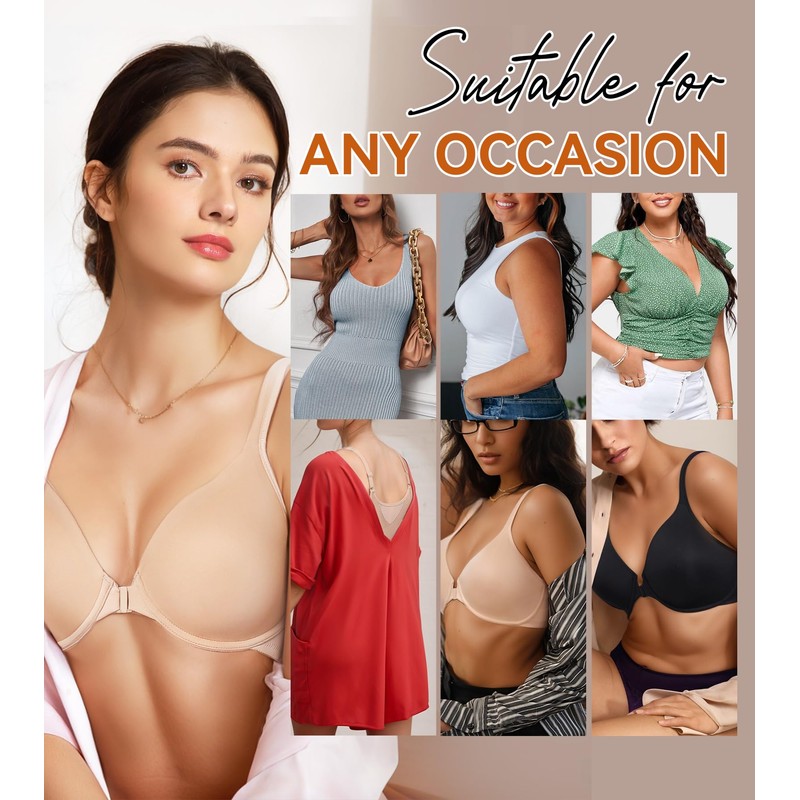 - Thoughtful Structure: Y-neckline pairs well with low-cut clothes, while the inverted V-shaped hem of this front close posture bra keeps your breasts in place. Crafted with breathable fabric and ergonomic support, this back smoothing posture correcting bra seamlessly blends comfort and functionality.