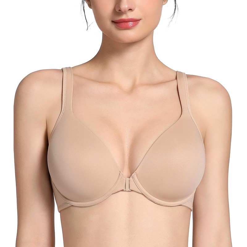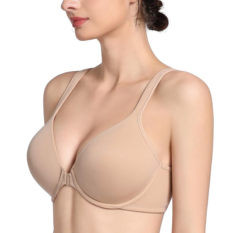 Lemorosy Front Closure Posture Bra Back Support Smoothing Underwire Comfortable Everyday Bras for Women (Beige,34DD)