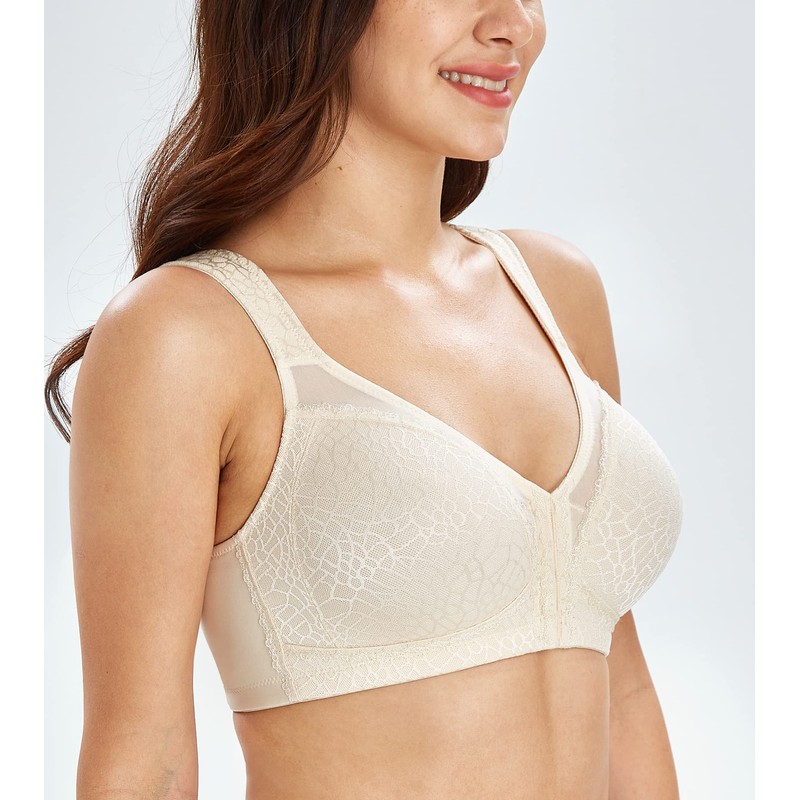 Lemorosy Full Coverage Front Closure Posture Bra Wirefree Unpadded Back Support Bra(Beige, 36B)