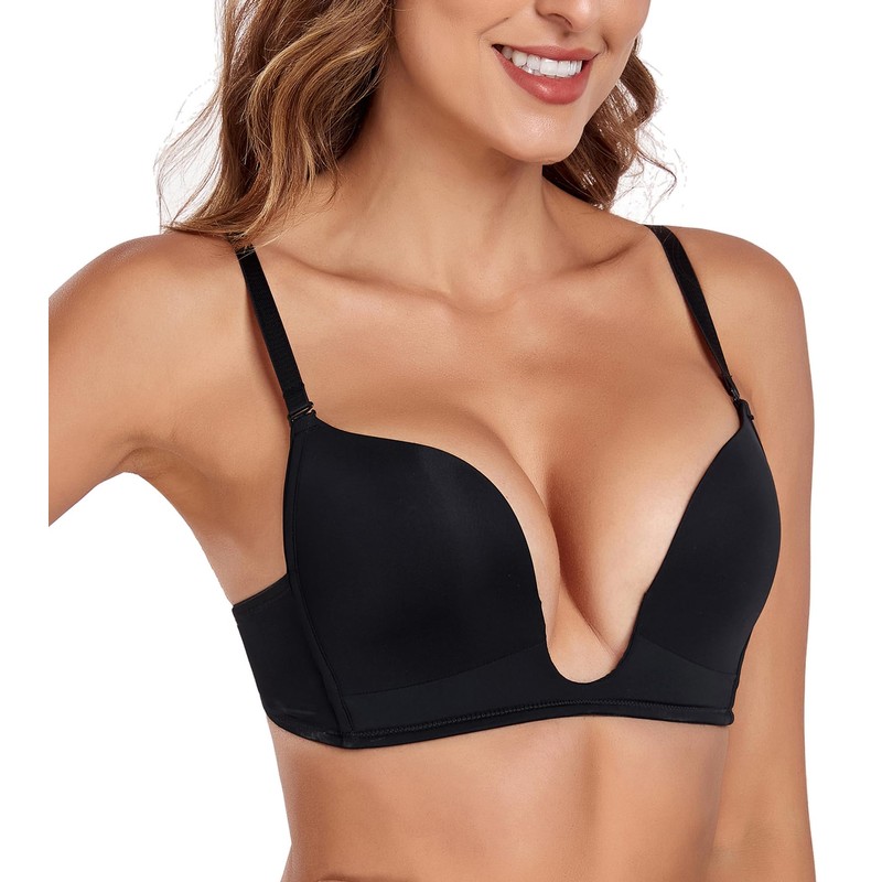 - Deep Plunge Design: U-shape Plunge deep V design show your most attractive breast ditch. Plunging bra with slight padding,T-shirt back closure bra is easy to put on and off.