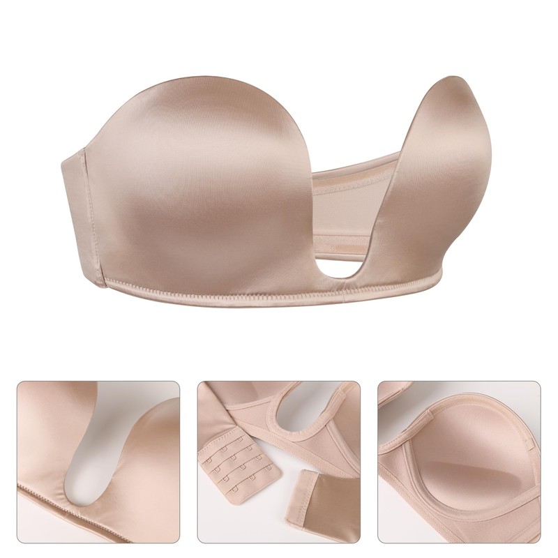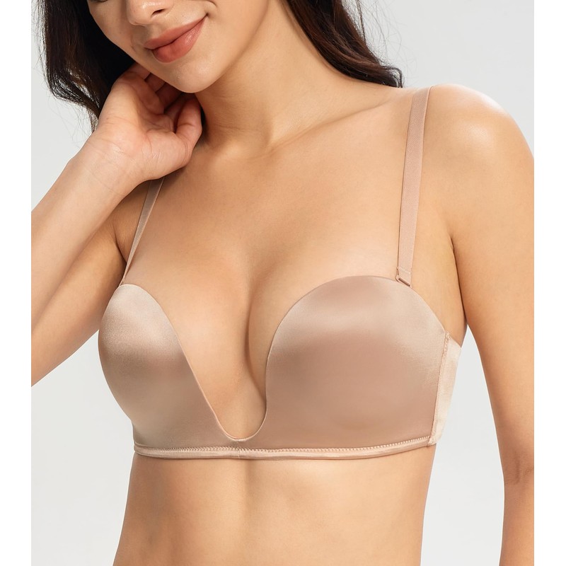 Lemorosy Women's Deep U Plunge Strapless Bra Underwire Low Cut Push Up Multiway Bra(36A, Nude)