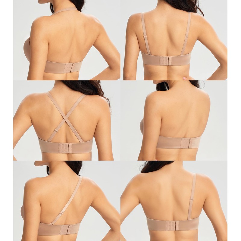 - Convertible Detachable Straps: This multiway strapless bra comes with detachable straps,can be worn in various ways such as strapless, halter, crisscross or one-shoulder and so on