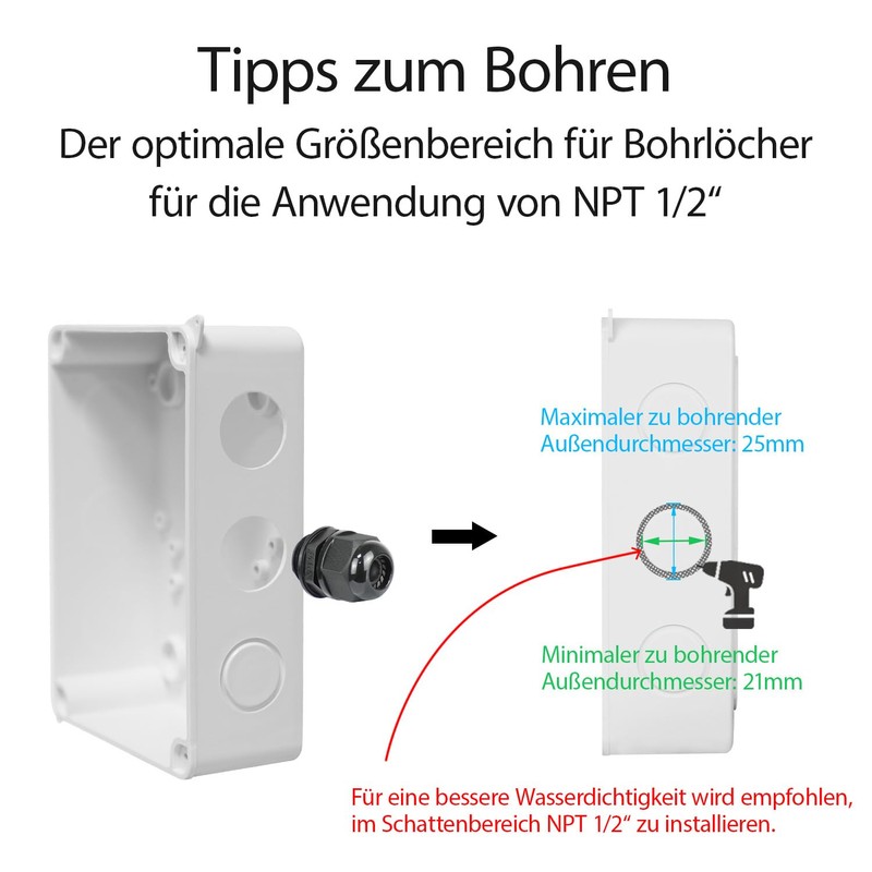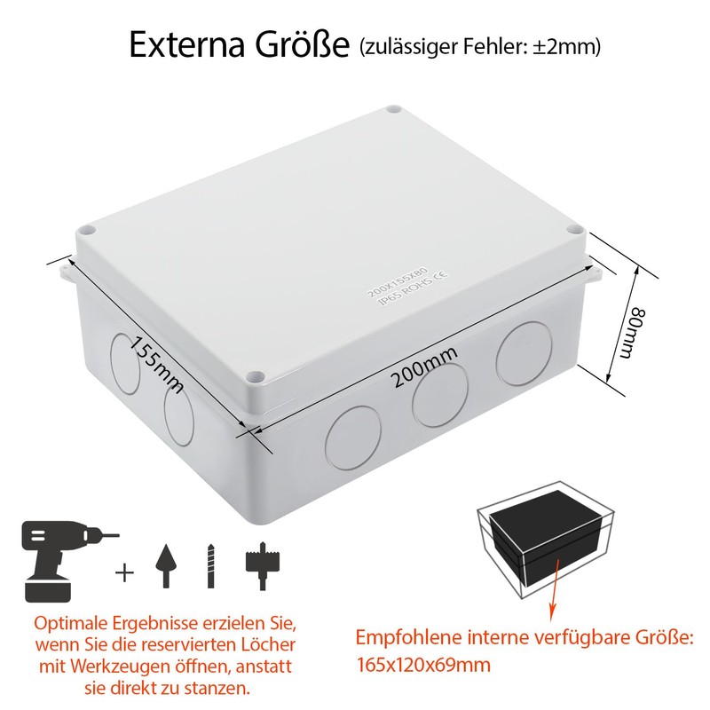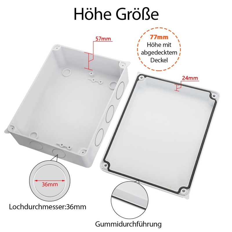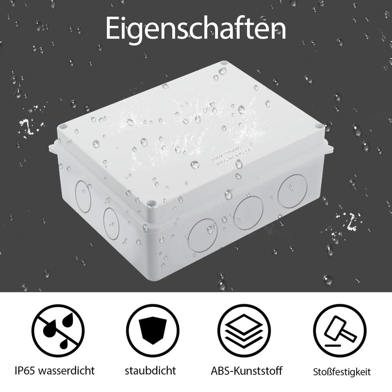 - [Safe and Certified] The IP65 waterproof junction box is RoHS compliant. It is free from hazardous substances. The junction box is easy to install and can be drilled to change.
