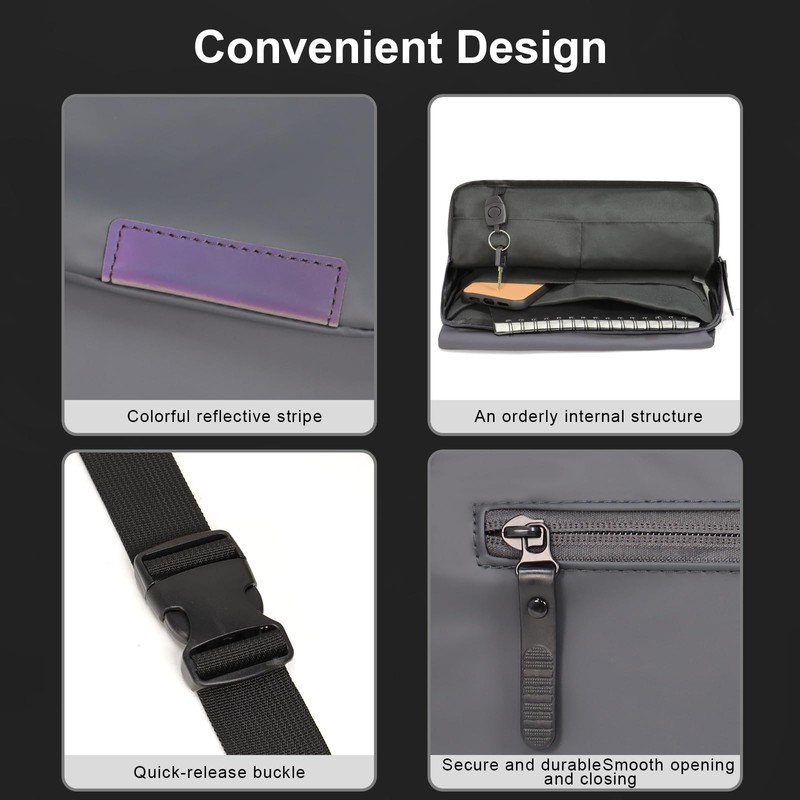 - Versatile: This sleek and compact bag effortlessly transitions from a Ipad sleeve to a messenger bag,from a sling bag to a waist funny pack.