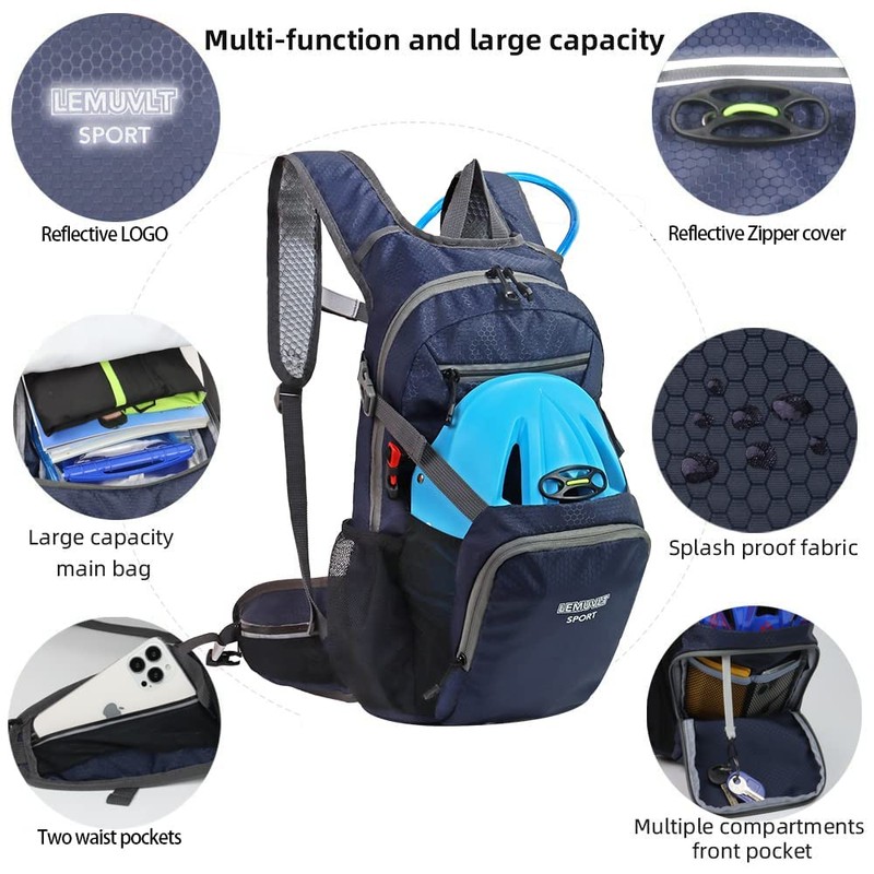 ①COMPACT& LIGHTWEIGHT :Compact and lightweight with a minimalistic design perfect for the outdoor adventure. This Hydration pack is designed specifically for hiking, cycling, camping, running,music festival, rave , kayaking,It is light and stable on your back and won’t create a ton of wind resistance ,keep your body functioning at peak performance whether you're training for a marathon or cycling. ②COMFORTABLE & ADJUSTABLE:Thanks to its Water-resistant, Lightweight design with Reinforced Stitches, Fully Adjustable with Shoulder, Chest and Waist Straps with Extra Padded Shoulder and Waist Straps for Complete Comfort,this small water packback for hiking is super durable and reliable for daily use. ③VERSATILITY:The expanded storage compartments keep organized bike helmet,dry clothing, rain jackets, sunscreen, energy bars, maps, keys, phones, wallets, and whatever else you might need.With two extra pockets on the wide waist straps you can put your phone or other valuables in and take them out freely. A decent Holiday Gift for families and friends who love outdoor sports. ④TRUSTED SAFE:Built-in reflectivity and safety whistle make men women teen easy to see and hear on the trail.There's no limitation to the activities you can take this backpack along for.If this hiking backpacks fails to meet your expectations, we'll spare no effort to ensure your happiness. ⑤NOTICE:Being a versatile pack, it also comes with a hydration system, but water bladder is NOT included.