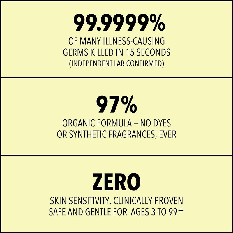 - 97% Organic Ingredients, 70% v/v USDA Organic Sugar-Cane Ethyl Alcohol, Green-Certified, USDA Certified Biobased Product 100%