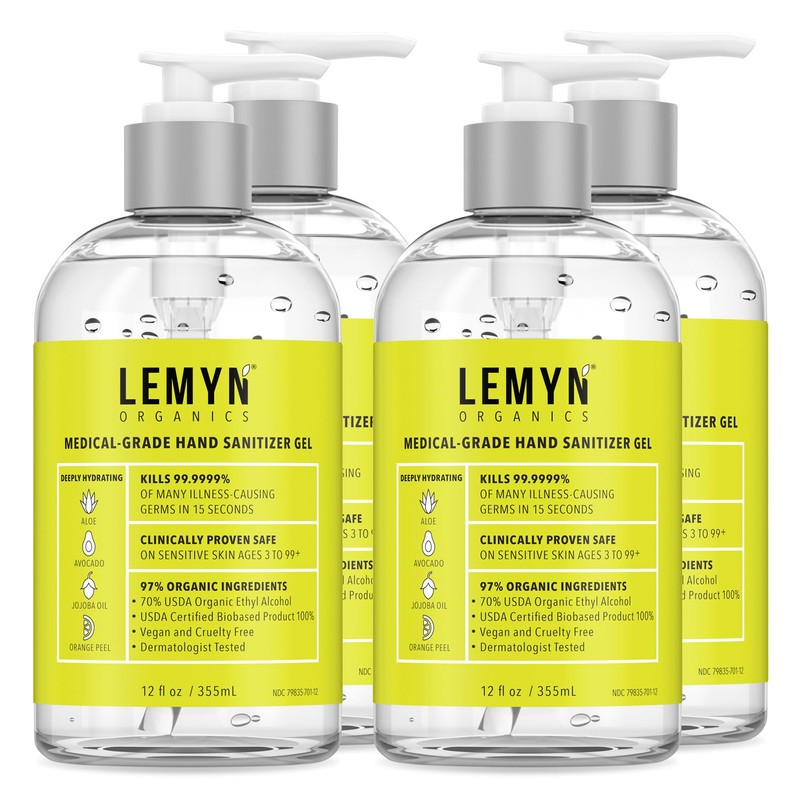 Lemyn Organics Medical Grade Hand Sanitizer Gel - 97% ORGANIC - 12 FL.OZ. (PACK OF 4)
