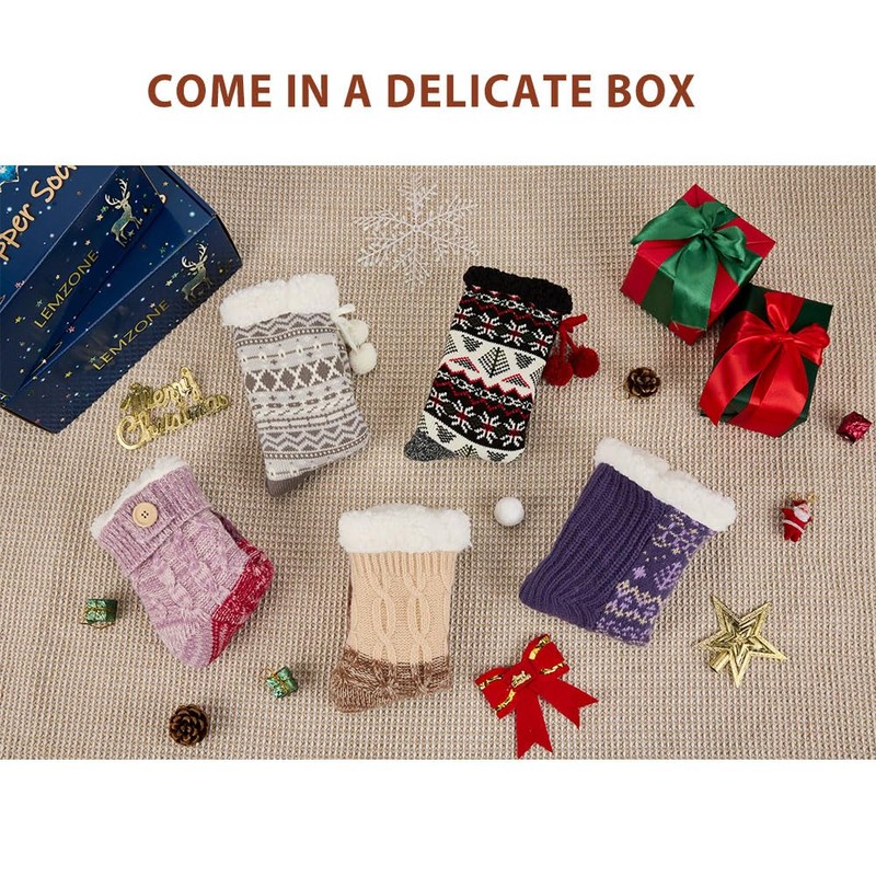 LEMZONE Women's Thick Warm Fuzzy Slipper Socks Cozy Girl Winter Grip Socks with Fleece Lining