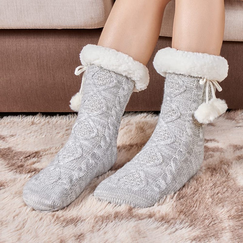 - These thermal socks for women girls are extremely fluffy with thick fuzzy lining went all the way down the socks. It's just snug enough to not fall down while keep your feet free, allowing for easy blood flow to your feet
