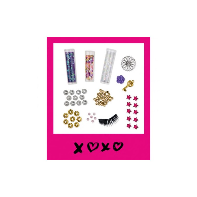 - Contains glitter glitter backing paper, metal and plastic beads, pendants, gel stars and rhinestones