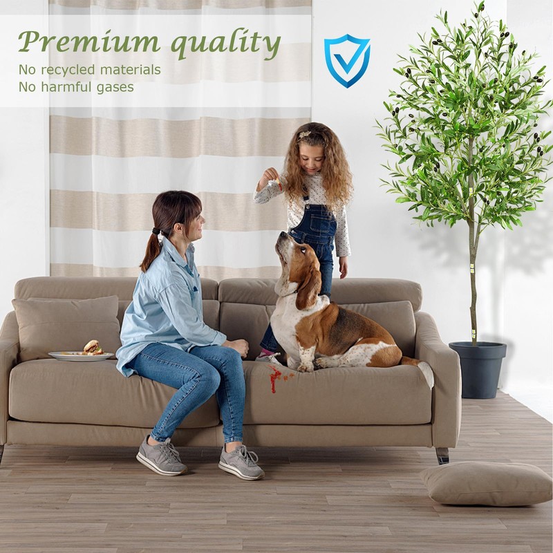 Lenamos Olive Trees Artificial, Tall Faux Olive Tree, Fake Potted Olive Tree, Artificial Plants with Natural Wood Trunk, Lifelike Fruits for Home Office Decor and Housewarming Gift (6ft/180cm)