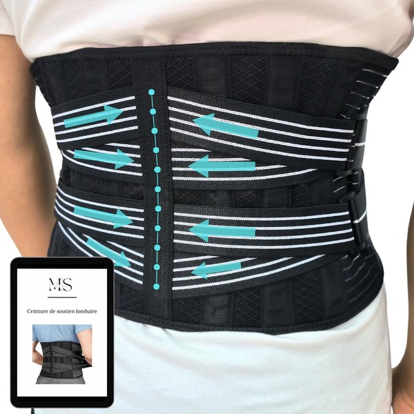 Lendenwirbelstütze, verstellbar, für Herren und Damen, zur Rückenentlastung | ideal für Arbeit oder Sport | 4 Federn, Größe S bis XL | perfekt für Ischias Lumbago Haltung
