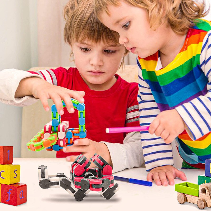 • IMPROVE CHILDREN'S MULTIPLE SKILLS: Each of the 24 links can pivot and lock into 5 positions, so you can create any shapes you want, such as letters, numbers, animal and more. bring challenges and fun to your fingers and brain. Not only help kids concentrate, improve their practical and reasoning skills, increase creativity and expand their thinking, but also help promote a sense of calm, reduce stress and anxiety.