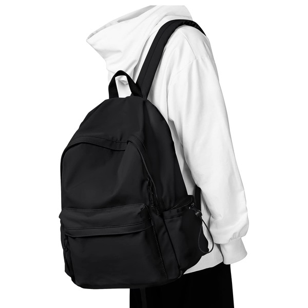 - 【Multiple storage pockets】This black backpack features multiple pockets and compartments, including a zipper bag, a zipper front bag, two drawstring side bags and an anti-theft zipper bag. The side pockets can hold water bottles and umbrellas. Spacious compartments and multiple pockets keep your belongings neat and organized, easier to find for easy access on the go, and hidden anti-theft pockets keep valuables out of the way to prevent theft.