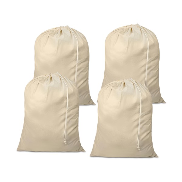 Lenenz 4 Pack Reusable Laundry Bags - 100% Cotton Multi Purpose Travel Laundry Bag - Durable & Machine Washable - Large Laundry Bag 28 x 36"