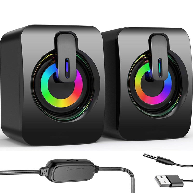 LENGSIDA Bocinas para PC, Altavoces Multimedia USB para PC, Computadora, Tablet, Teléfono, Entrada de 3,5 mm, Luces RGB