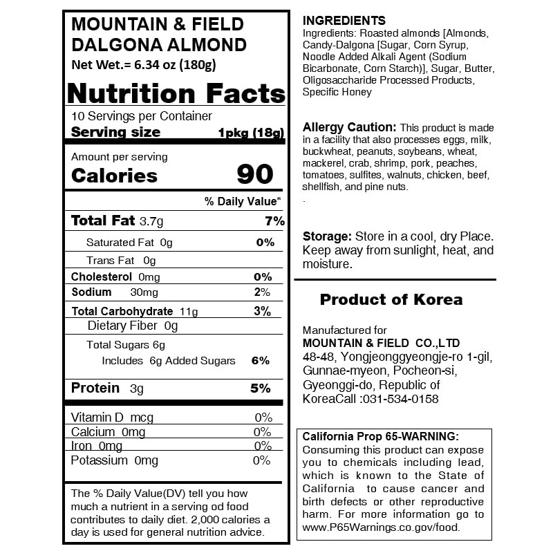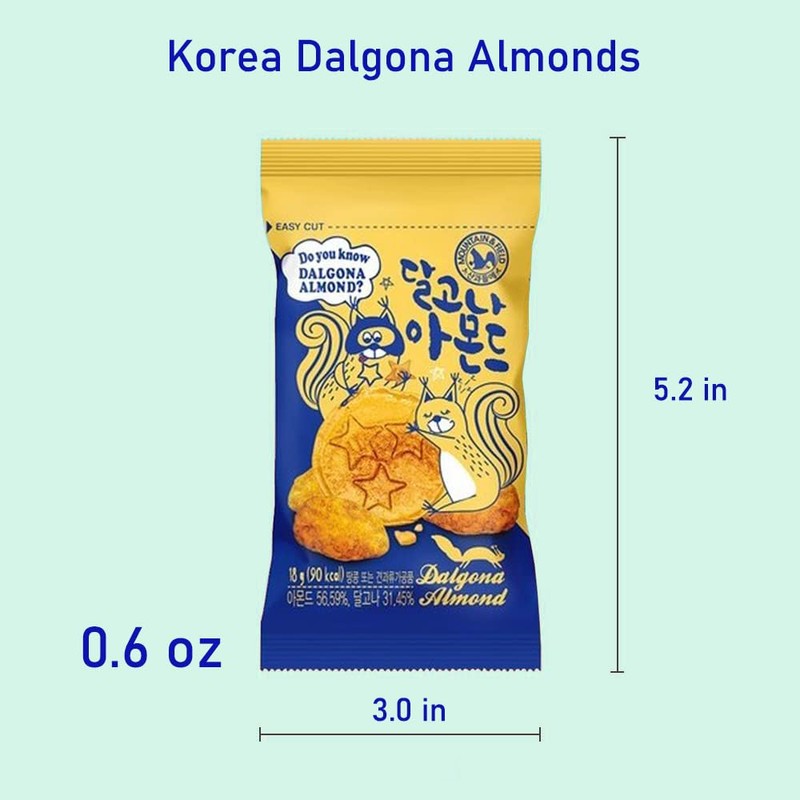 - Experience the perfect harmony of dalgona enveloping each almond in a layer of delightful sweetness. Once you taste it, you'll want to keep eating it. Dalgona on the outside, almond on the inside.
