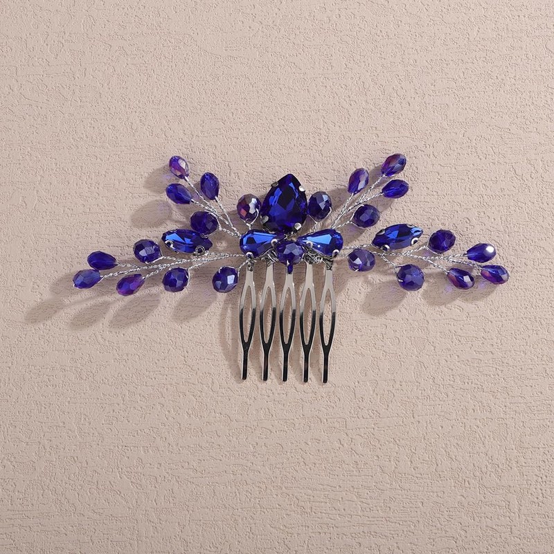 Lenjicons Bridal Rhinestone Beads Hair Comb Handmade Crystal Rhinestone Hair Comb Elegant Crystal Wedding Headpiece Wedding Hair Accessories for Women (blue)