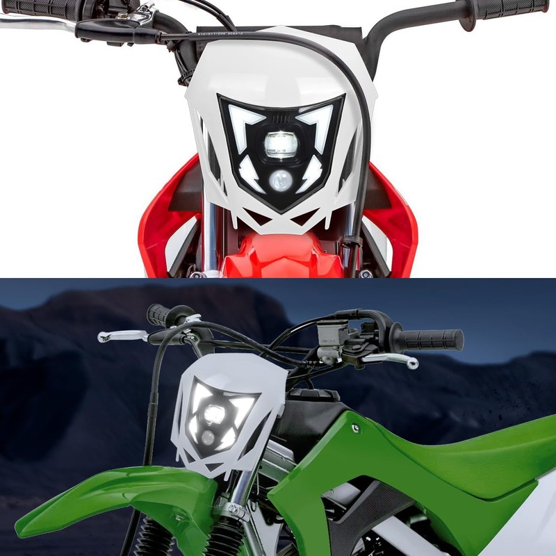 - WIDE APPLICATION: This dirt bike headlight is designed with distinctive DRL and outputs a 2000LM high beam and 1500LM low beam, brighter than stock halogen headlights. Fit most Dirt bikes, Pit bikes, Motorcycles, ATVs, Enduro Motocross like CRF, EXC, KLX, DRZ, FC, YZF