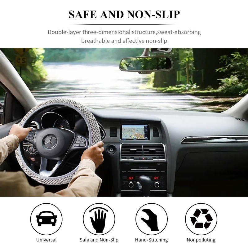 - 【Hochwertige Materialien】🚗Unser Lenkradbezug besteht aus hochwertigem Mesh-Gewebe, das atmungsaktiv, schweißabsorbierend, rutschfest, angenehm anzufassen, stabil und langlebig ist. Die Lenkradabdeckung ist für den Einsatz zu jeder Jahreszeit geeignet. Im Winter fühlt es sich nicht kalt und im Sommer nicht heiß an. Machen Sie Ihr Fahrerlebnis noch angenehmer.